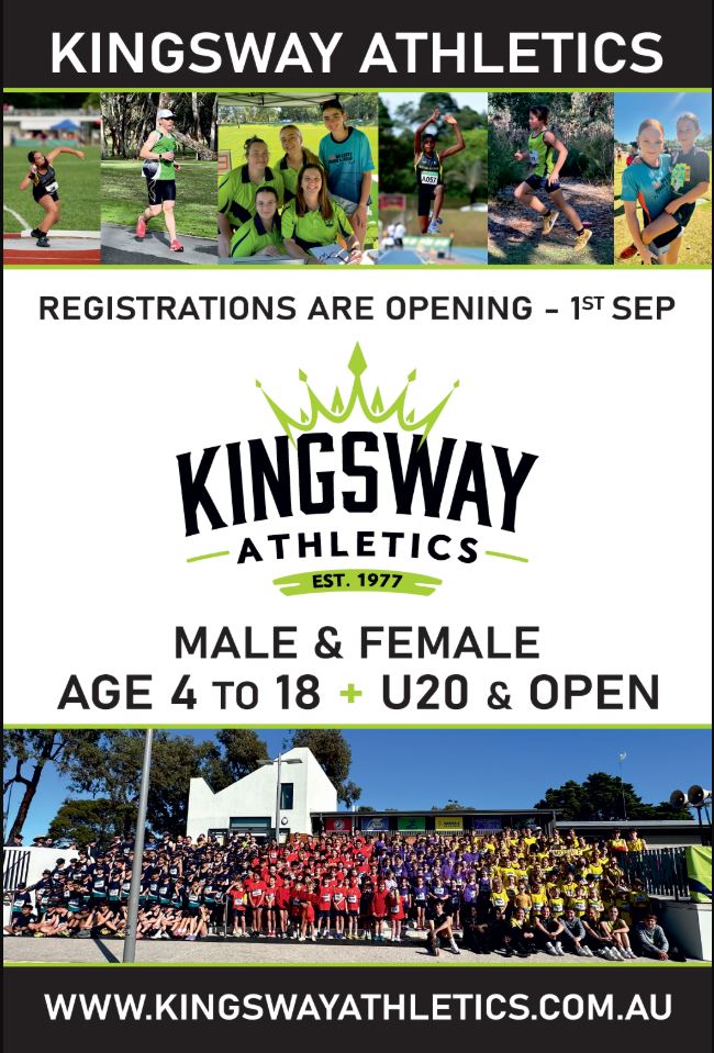 Kingsway Athletics summer registrations will be opening 1 September 2025 and Kidsport applications are already open with our competitions starting mid-October.
